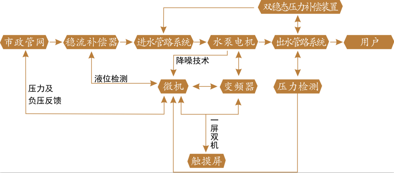 無(wú)負(fù)壓供水設(shè)備采用微機(jī)變頻技術(shù)、降噪技術(shù)、一屏雙機(jī)技術(shù)、雙穩(wěn)態(tài)壓力補(bǔ)償技術(shù)、負(fù)壓處理技術(shù)實(shí)現(xiàn)無(wú)負(fù)壓供水。通過(guò)觸摸屏顯示運(yùn)行狀態(tài),通過(guò)微機(jī)控制、雙穩(wěn)態(tài)壓補(bǔ)償裝置及真空補(bǔ)償系統(tǒng),實(shí)現(xiàn)了與自來(lái)水管網(wǎng)直接串接,并且克服了對(duì)管網(wǎng)的不良影響。